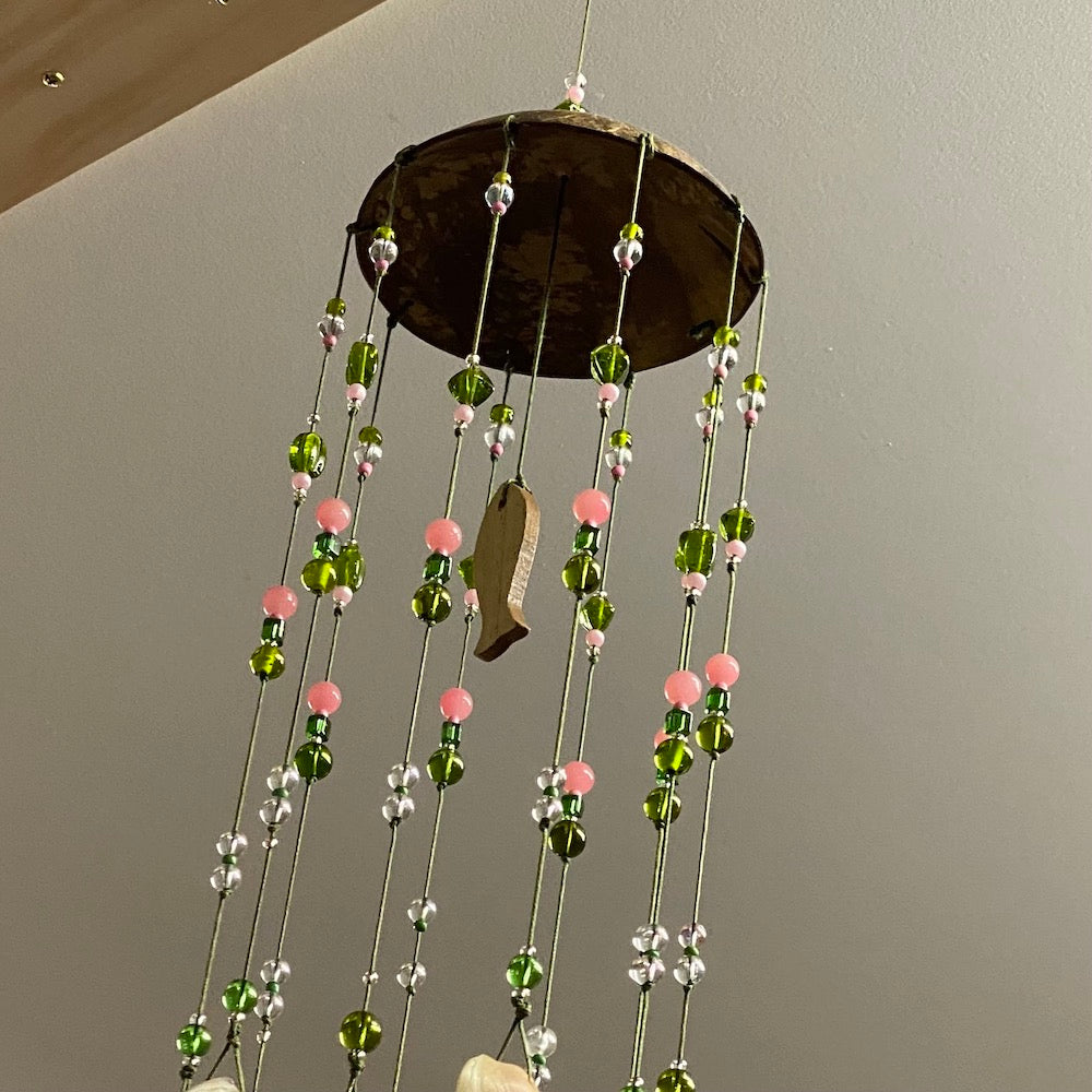 - Use your mismatched left over beads and make one like in our photo. This hanger in our photo was made by my friend Jo and uses lots of Indian glass beads, which really look great on projects like this. From the bottom she has hung natural shells that she collected herself from the beach, and in the centre don't you just love her wood fish? This hanger can be inside the house, or outside on the porch.