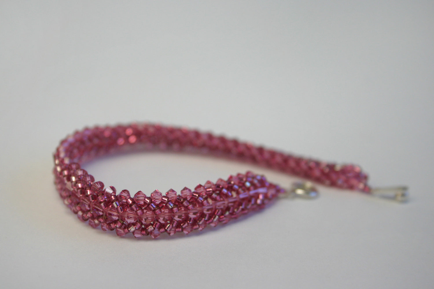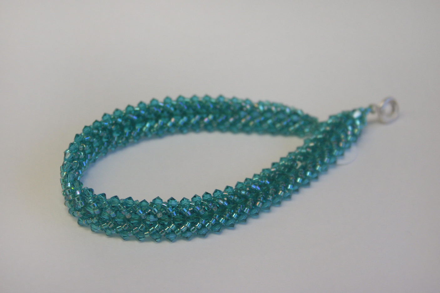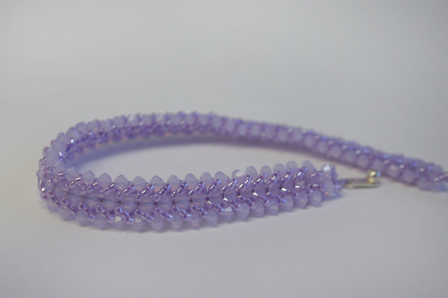 Materials Required: 1 Press-Stud clasp or similar (any clasp you like, plus you could attach a safety chain if you like too), 4 grams x 11/0 Japanese Miyuki Delica beads, Swarovski Crystal bicone beads - 98 x 3mm and 50 x 4mm.
