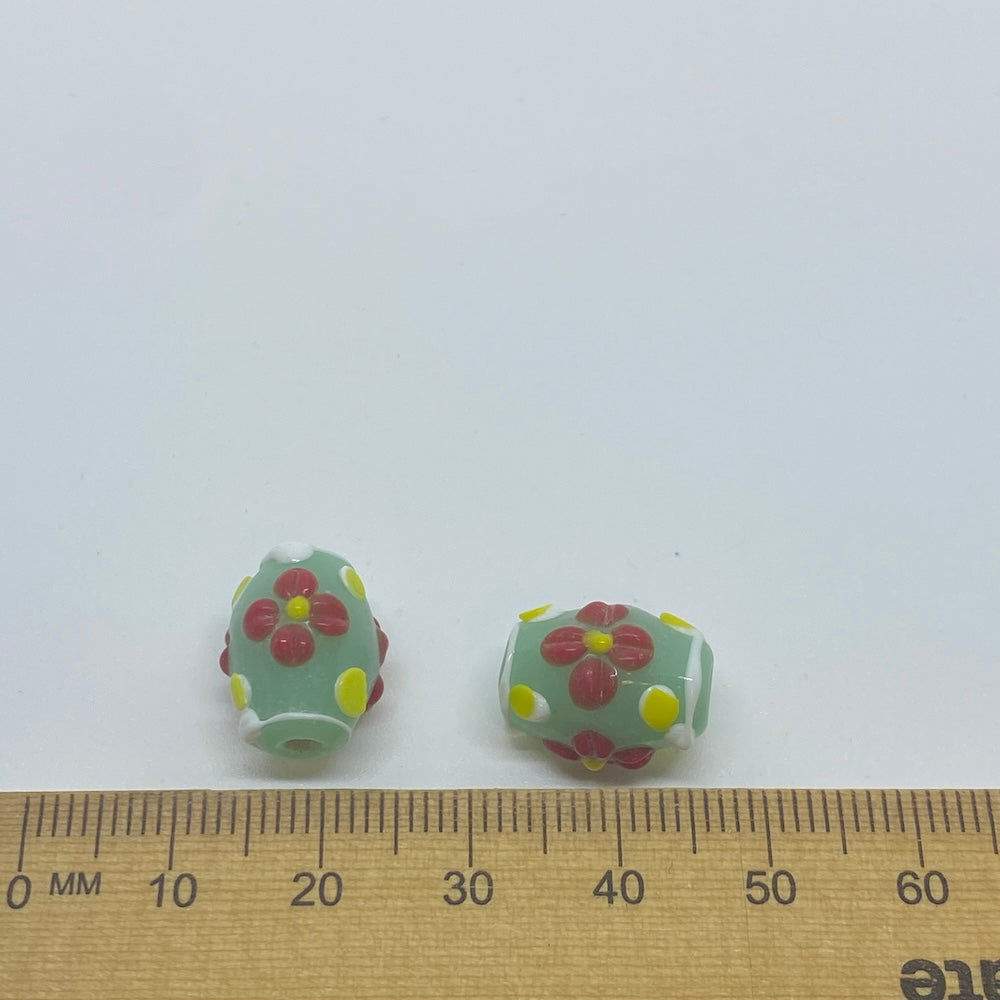 Floral Barrel Bead (10) - Translucent Light Green - Vintage Handmade Glass Lampwork Beads is backordered and will ship as soon as it is back in stock.