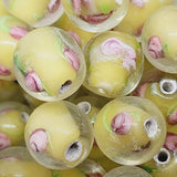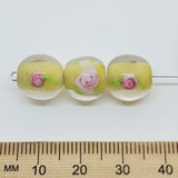 Floral Bead (10) - Yellow - Vintage Handmade Glass Lampwork Beads