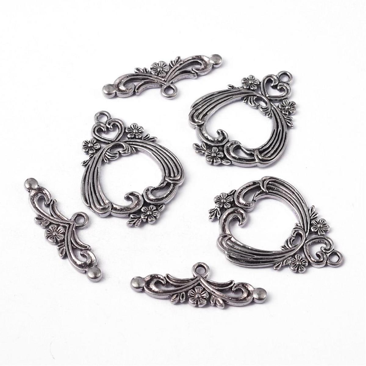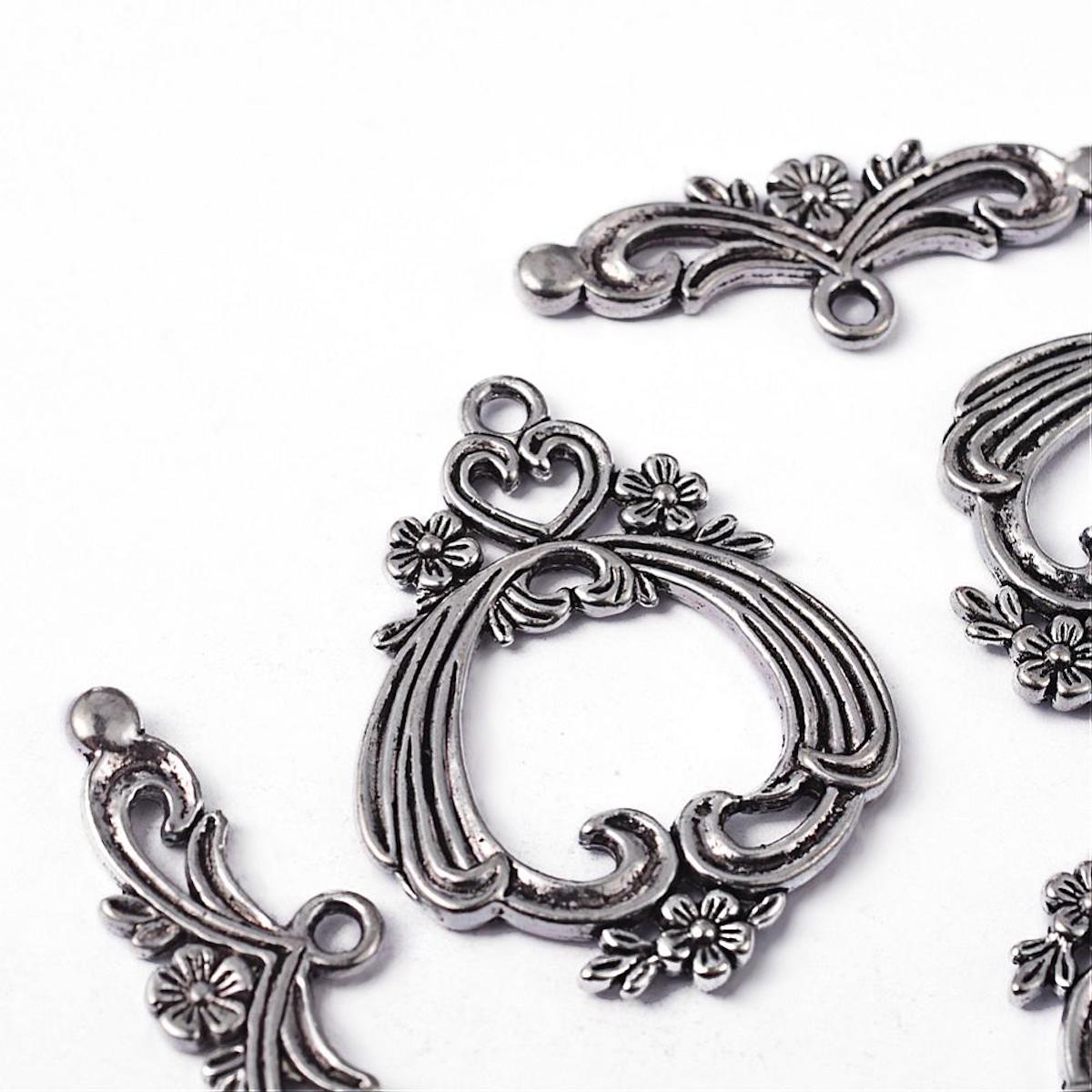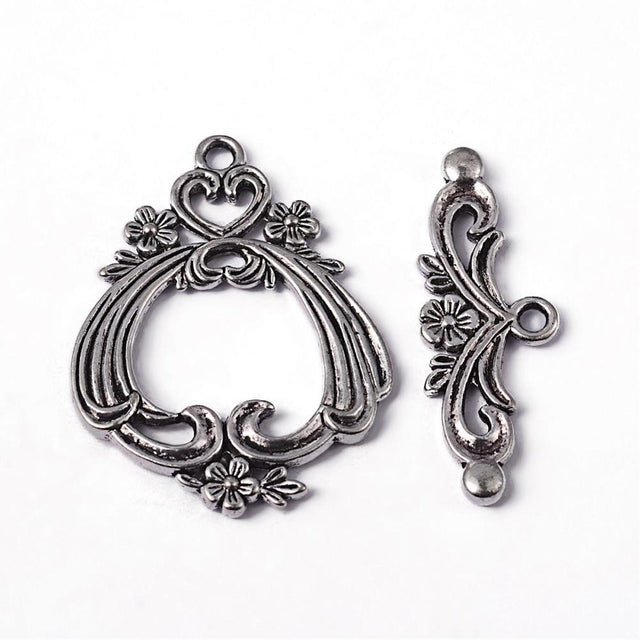 Flower & Heart Toggle (1) - Antique Silver