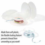 These fantastic little bobbins pop open so you can wind your thread on, then pop shut to keep the thread from coming off. Use under your Kumihimo disk to stop the knots and tangles!