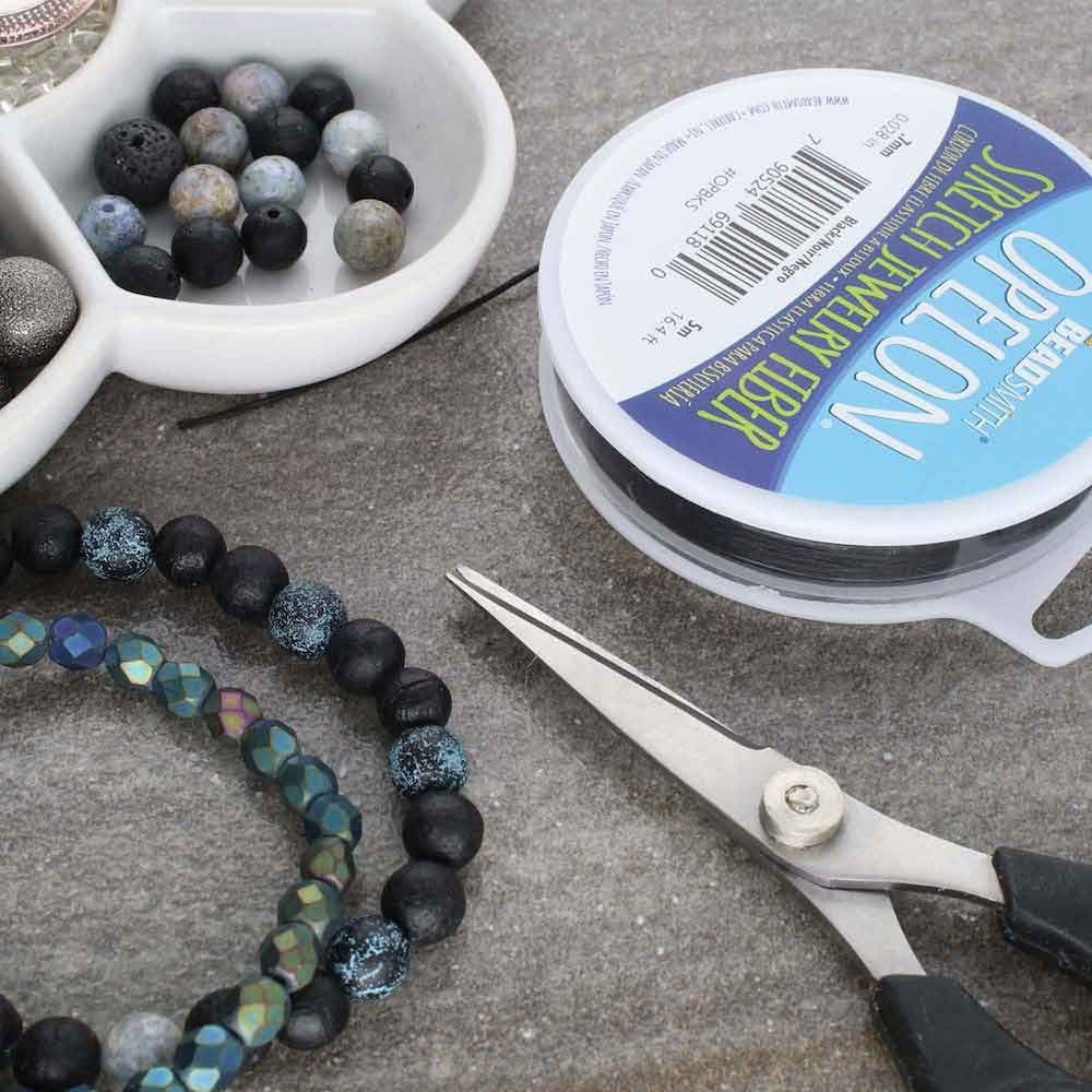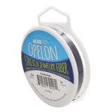 Opelon has a surprising stretch and resiliency, great for anklets and other slip-on and flexible jewelery pieces. It is unbelievably strong, it knots easily & doesn't require crimps. The string is thin enough to be tucked inside the hole of a bead, hidden from sight.