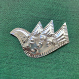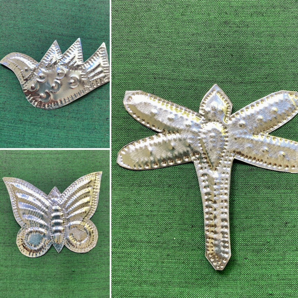 Individually made, unusual pieces, hand made from aluminium tin. Pressed & cut with love, ready for you to hang on your project of choice. Their touch of brilliant silver colour adds a bit of luxury & sparkle to your items. They reflect the light, and will be very eye catching, no matter your use for them.
