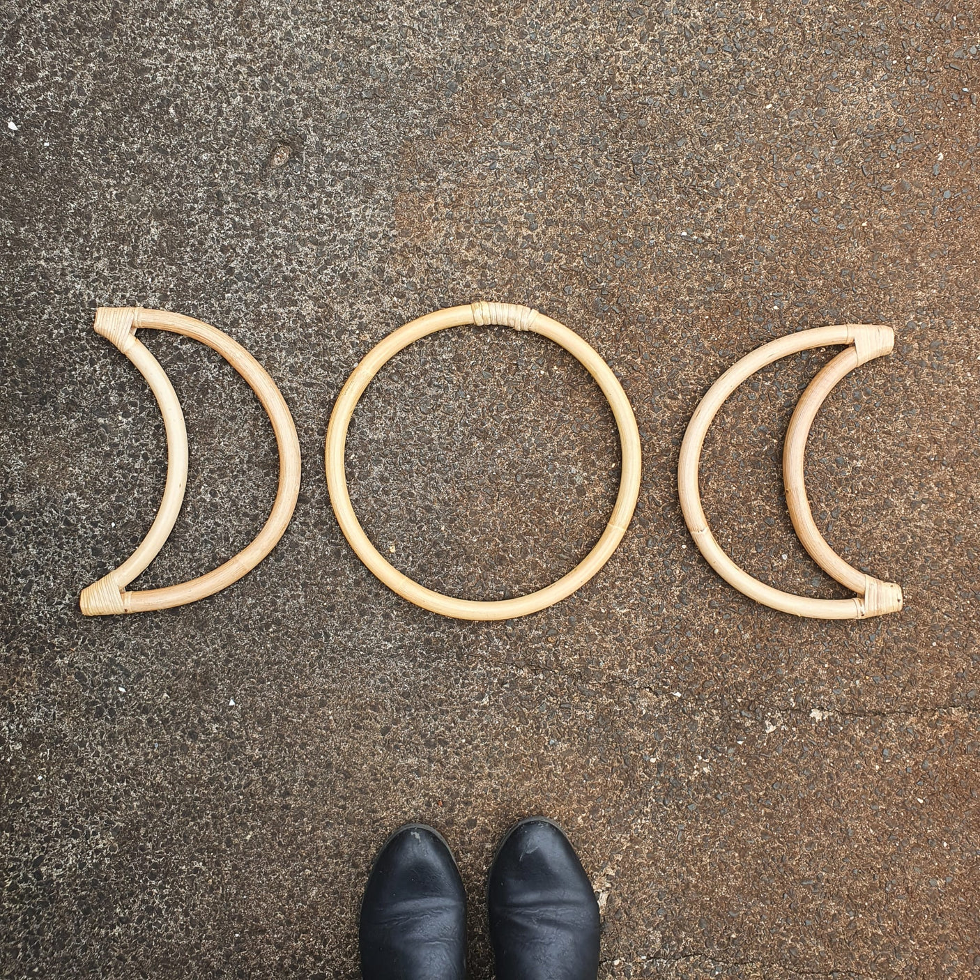 Paint it, leave it natural, smother it in ribbons, flowers, ropes, make a wall hanging, a birthday gift for a friend, a new decoration for your bedroom, make unusual creations for something different on your market stall. So many uses for these rattan (or some call bamboo) moons.