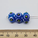 I took ages researching what the name of the bumps on these beads are called. Nobody seems to have a set name for them. Amongst my searching I saw names such as Sputnik, Spike, Hobnail, Pinata, Bumpy, Dotty, Eye, Polka Dots - so I'm not sure of the exact name. However they are lampwork glass beads, made over the heat of a flame, with the spikes added whilst the bead is still hot, Each bead will be quite unique as they are made individually.