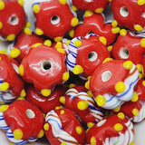 Spike Bead (5) - Red Opaque w. Yellow & White/Blue - Vintage Handmade Glass Lampwork Beads